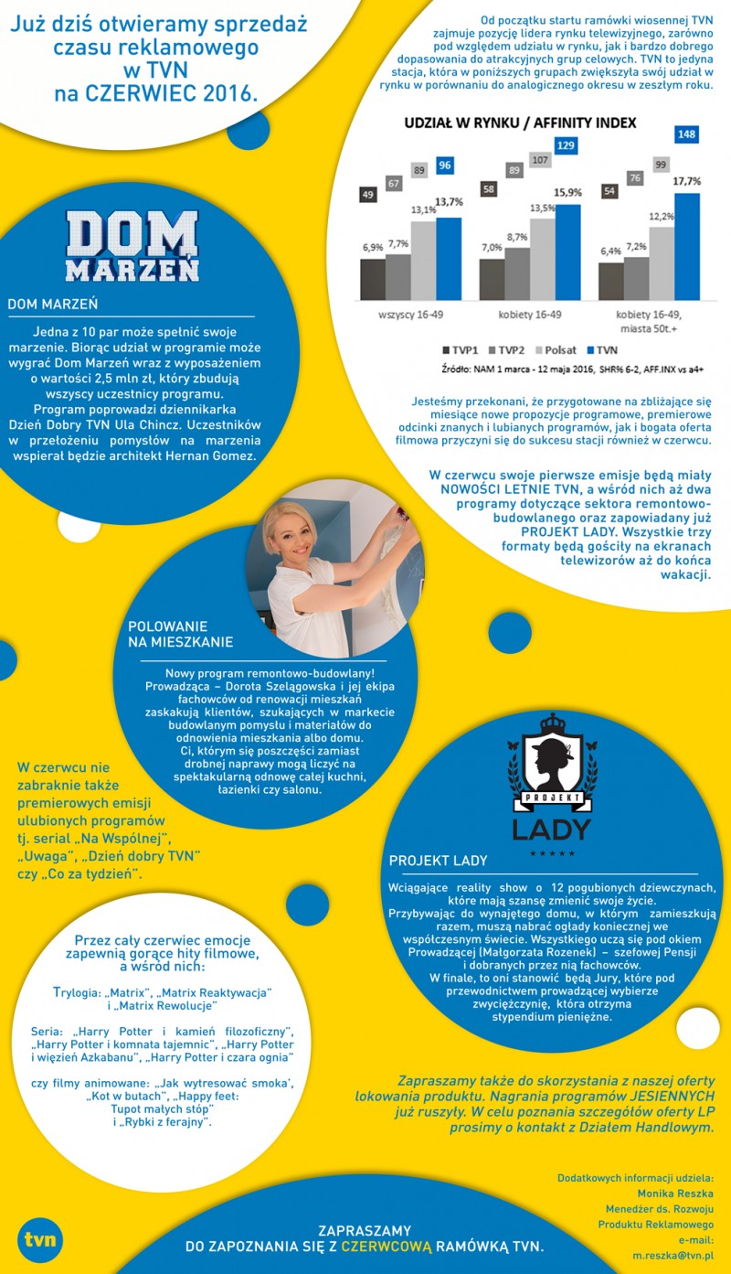 BIURO REKLAMY TVN MEDIA OTWIERA SPRZEDAŻ REKLAM W TVN NA CZERWIEC 2016