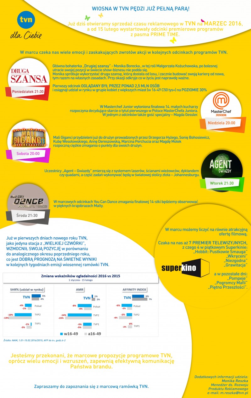 BIURO REKLAMY TVN MEDIA OTWIERA SPRZEDAŻ REKLAM W TVN NA MARZEC 2016