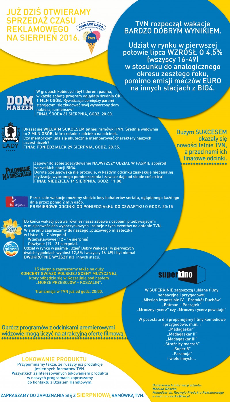 BIURO REKLAMY TVN MEDIA OTWIERA SPRZEDAŻ REKLAM W TVN i TVN7 NA październik…