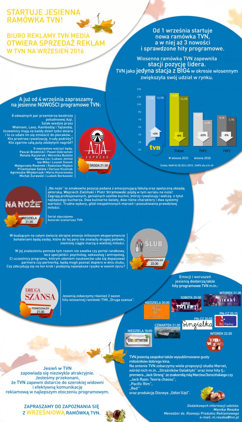 BIURO REKLAMY TVN MEDIA OTWIERA SPRZEDAŻ REKLAM W TVN NA WRZESIEŃ 2016