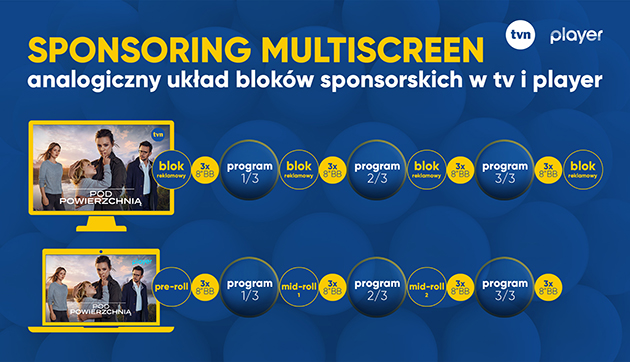 Wraz ze startem jesiennej ramówki telewizyjnej oferta Biura Reklamy TVN Media została poszerzona o nowy produkt reklamowy Sponsoring Multiscreen. Po raz pierwszy w ofercie serwisów VOD w Polsce reklamodawcy zyskują możliwość pakietowego zakupu kampanii sponsoringowej, ściśle związanej z wybranym formatem, niezależnie od kanału dystrybucji treści.