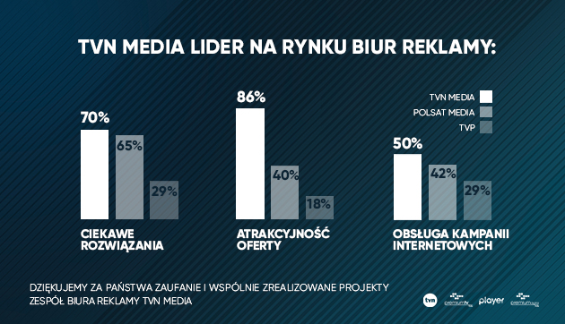 „Oferuje atrakcyjne formaty i rozwiązania” - 86% Klientów wskazało TVN Media vs 48% średnia w tej kategorii