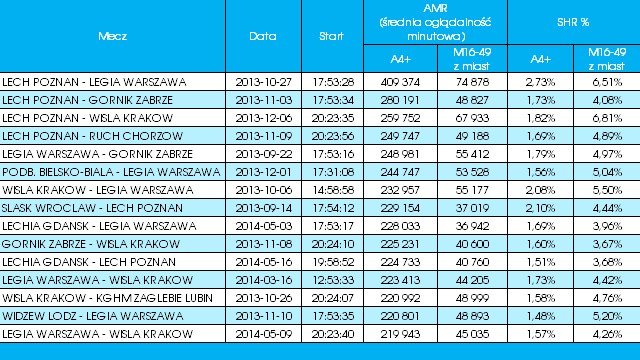 TOP15 najlepiej oglądanych meczów w sezonie 2013/2014: