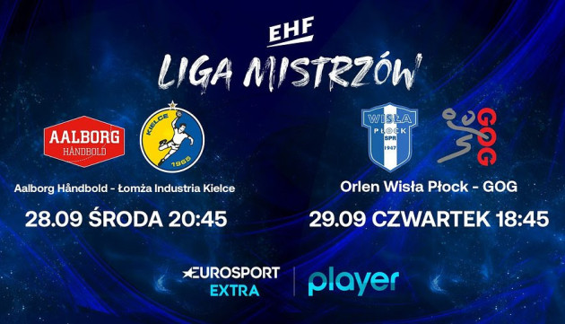 W drugiej kolejce Ligi Mistrzów obie polskie drużyny poniosły porażki z europejskimi gigantami – Barceloną i PSG. W środę i czwartek Łomża Industria Kielce i Orlen Wisła Płock będą miały okazję do powrotu na zwycięską ścieżkę. Mecze obu polskich zespołów w 3. kolejce Ligi Mistrzów na żywo w Eurosporcie 1 i Eurosporcie Extra w Playerze.Mistrzowie Polski zmierzą się w środę z Aalborgiem. Drużyna z Danii ma na koncie dwa zwycięstwa – z RK Celje Pivovarna Lasko i Elverum Handball i zajmuje pierwsze miejsce w grupie. Łomża Industria Kielce po zwycięstwie z HBC Nantes i porażce z Barceloną jest czwarta. Mecz Aalborg – Łomża Industria Kielce rozegrany zostanie w środę o 20:45. Transmisja z komentarzem Marka Rudzińskiego i Krzysztofa Bandycha w Eurosporcie 1 i Eurosporcie Extra w Playerze.