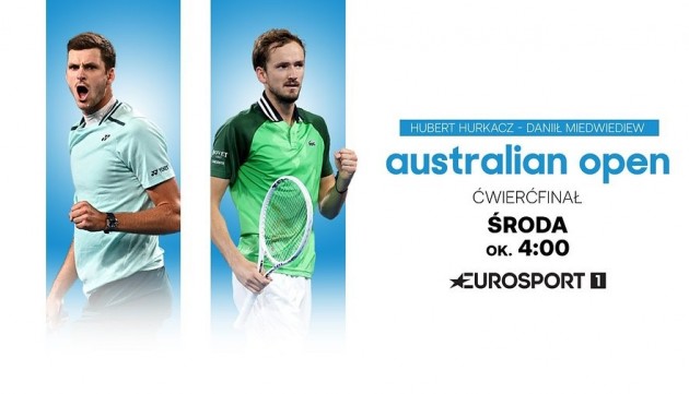 Awans do ćwierćfinału to najlepszy wynik Huberta Hurkacza w Australian Open. W nocy z wtorku na środę wrocławianin zmierzy się z Daniiłem Miedwiediewem w meczu, którego stawką będzie awans do najlepszej czwórki pierwszego turnieju Wielkiego Szlema w roku. Spotkanie Polaka z Rosjaninem będzie drugim meczem rozgrywanym na Rod Laver Arena. Transmisja w Eurosporcie 1 i Eurosporcie Extra w Playerze rozpocznie się około 4:00. Mecz skomentują Dawid Olejniczak i Radosław Szymanik.