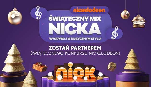 Zapraszamy do współpracy Partnerów komercyjnych, którzy chcieliby przed świętami dotrzeć ze swoją komunikacja do rodzin z dziećmi. Kanał Nickelodeon oferuje szerokie możliwości prezentacji Marki Klienta, m.in.: branding strony konkursowej, posty w Social Mediach (Facebook, Instagram) oraz obecność w materiałach telewizyjnych w świątecznych kreacjach Nick’a („Partnerem akcji: Świąteczny Mix Nicka jest…”).