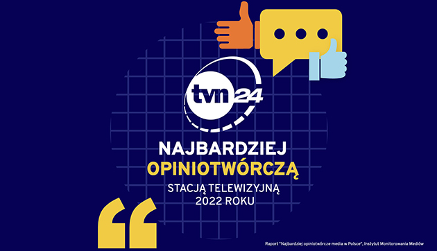 Stacja informacyjna TVN24, należąca do globalnego koncernu medialnego Warner Bros. Discovery, była najbardziej opiniotwórczą stacją telewizyjną w Polsce w 2022 roku - wynika z badania Instytutu Monitorowania Mediów (IMM). Na informacje podawane na antenie TVN24 powoływano się prawie 16,3 tysiąca razy.