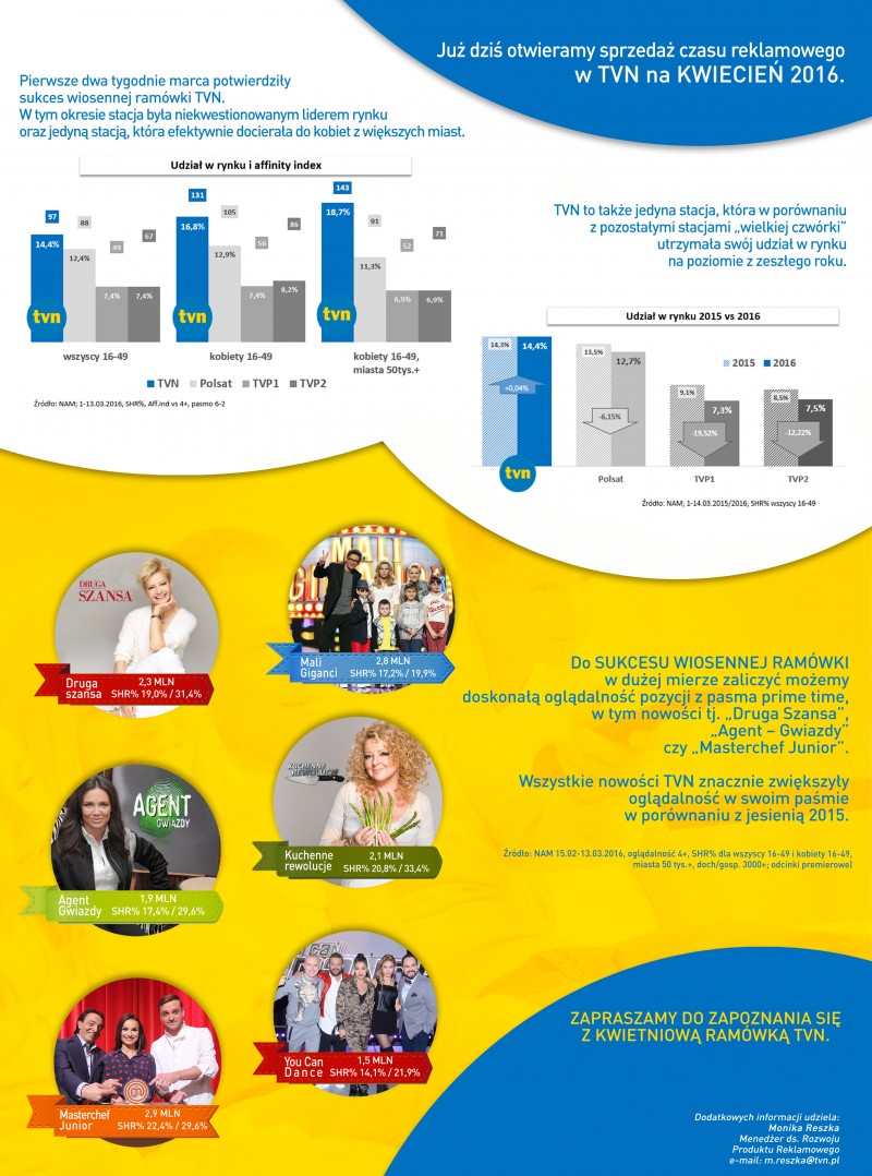 BIURO REKLAMY TVN MEDIA OTWIERA SPRZEDAŻ REKLAM W TVN NA KWIECIEŃ 2016