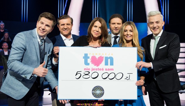 Bohaterami specjalnych odcinków "Milionerów" emitowanych w Święta Wielkanocne byli: Kinga Rusin i Piotr Kraśko, Filip Chajzer i Zygmunt Chajzer oraz Małgorzata Rozenek-Majdan i Radosław Majdan. Trzy gwiazdorskie duety wygrały na rzecz podopiecznych Fundacji TVN "nie jesteś sam" aż 580 tysięcy złotych! Czek z rąk Huberta Urbańskiego odebrała Katarzyna Kolenda-Zaleska - Prezes Fundacji TVN.