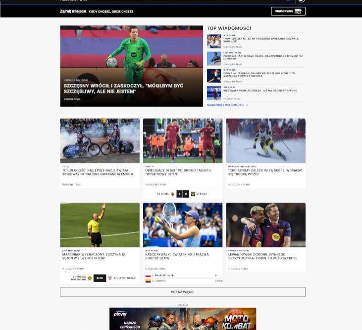 EUROSPORT.TVN24.PL-informacje na najwyższym dziennikarskim poziomie o najważniejszych wydarzeniach sportowych w roku. Obszerna biblioteka wideo, w tym materiały z anten Eurosportu, lokalne i międzynarodowe produkcje stacji, a także eksperckie analizy, artykuły i najświeższe informacje, które zaangażują fanów i pasjonatów różnych dziedzin sportu. Strona eurosporttvn24.pl zawiera wiele artykułów, relacji, analiz i wywiadów z gwiazdami sportu oraz najświeższe informacje ze wszystkich dyscyplin. Znajdziemy na niej również materiały wideo dotyczących piłki nożnej, koszykówki, kolarstwa, żużla, czy snookera. Swoje miejsce na stronie mają znane od lat Wattsy, czyli zabawne momenty z aren sportowych, jak zawsze ze znakomitą oprawą muzyczną.