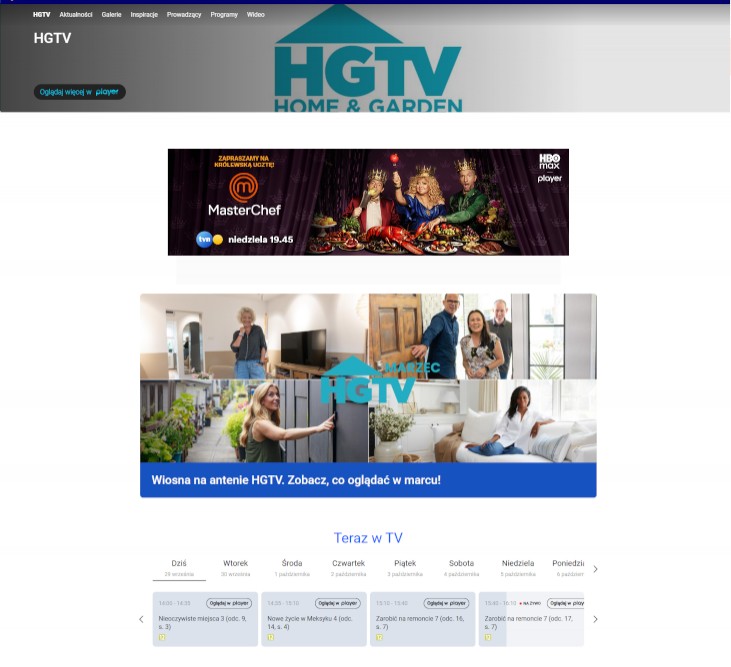 Serwis HGTV zaprasza widzów do świata ciekawych i oryginalnych wnętrz, pięknych ogrodów, gruntownych remontów, metamorfoz domów oraz porad ekspertów. Stacja inspiruje i dostarcza praktycznych wskazówek, które każdy widz może wykorzystać we własnym domu. W serwisie użytkownicy znajdą aktualny program HGTV, zapowiedzi najciekawszych produkcji zarówno stacji jak i produkcji zagranicznych, a także poznają sylwetki prowadzących. Serwis HGTV zintegrowany jest z mediami społecznościowymi (facebook, instagram, pinterest).