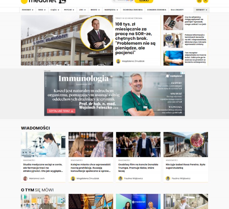 Lider wśród serwisów zdrowotnych w Polsce zarówno pod względem zasięgu, jak i zaufania ze strony użytkowników. Serwis tworzy profesjonalna redakcja złożona z doświadczonych i nagradzanych dziennikarzy medycznych współpracujących z lekarzami i specjalistami. Polityka redakcyjna Medonetu oparta jest o ideę Explanatory Journalismu, który polega na przedstawianiu trudnych medycznych informacji w przystępny sposób, ujmując szeroki kontekst, co doceniają zarówno użytkownicy, jak i środowisko medyczne. Partnerem serwisu jest Collegium Medicum Uniwersytetu Jagiellońskiego - najstarsza i jedna z najlepszych uczelni medycznych w Polsce, a także najważniejsze polskie towarzystwa medyczne, w tym: kardiologiczne, onkologiczne i diabetologiczne.