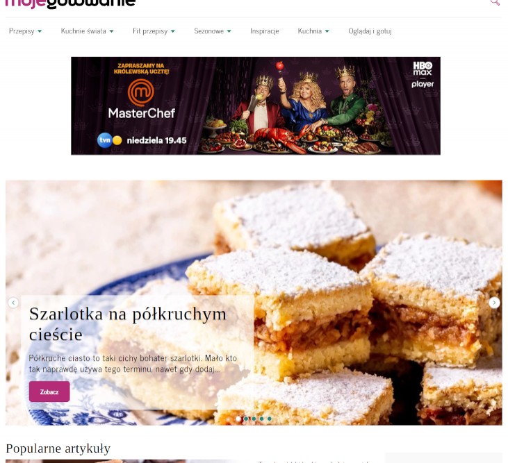 To serwis, gdzie rządzą apetyczne zdjęcia i przepisy, którym po prostu nie sposób się oprzeć. W serwisie Mojegotowanie.pl użytkownik znajdzie także praktyczne wskazówki, jak jeść i gotować sezonowo z wykorzystaniem nieoczywistych, pomysłowych rozwiązań i trików, porady szefów kuchni oraz najsłynniejszych osobowości ze świata kulinariów, a także praktyczne patenty doświadczonych miłośników dobrego jedzenia. Mojegotowanie.pl to również źródło inspiracji, jak zamienić każdą zwyczajną kuchnię w najlepsze miejsce na ziemi. W wyborze potraw pomaga wypozycjonowana baza przepisów na klasyczne dania z kuchni polskiej i kuchni świata.