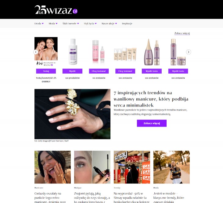 Niekwestionowany lider wśród serwisów Moda i Uroda. Szeroka tematyka zaspokaja potrzeby zarówno nastoletnich dziewczyn, jak i dojrzałych kobiet. To największy serwis urodowy w Polsce - jest już 22 lata na rynku!